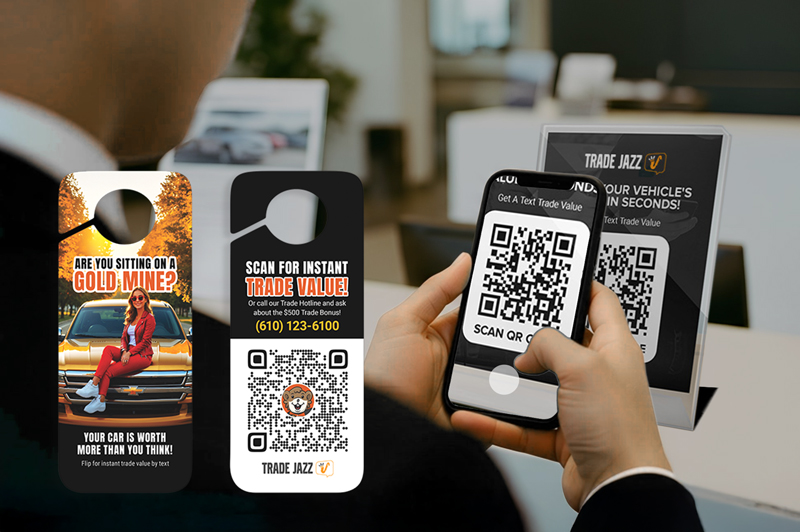 Add signage throughout your dealership including sales and services areas. Add mirror hangers to vehicle inventory or serviced vehicles.